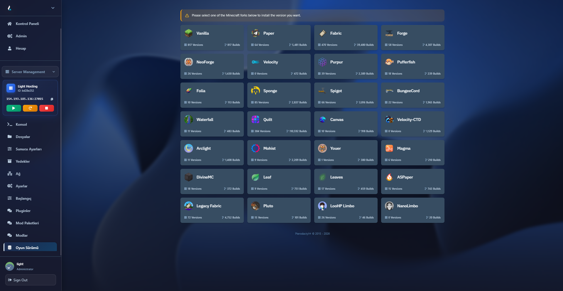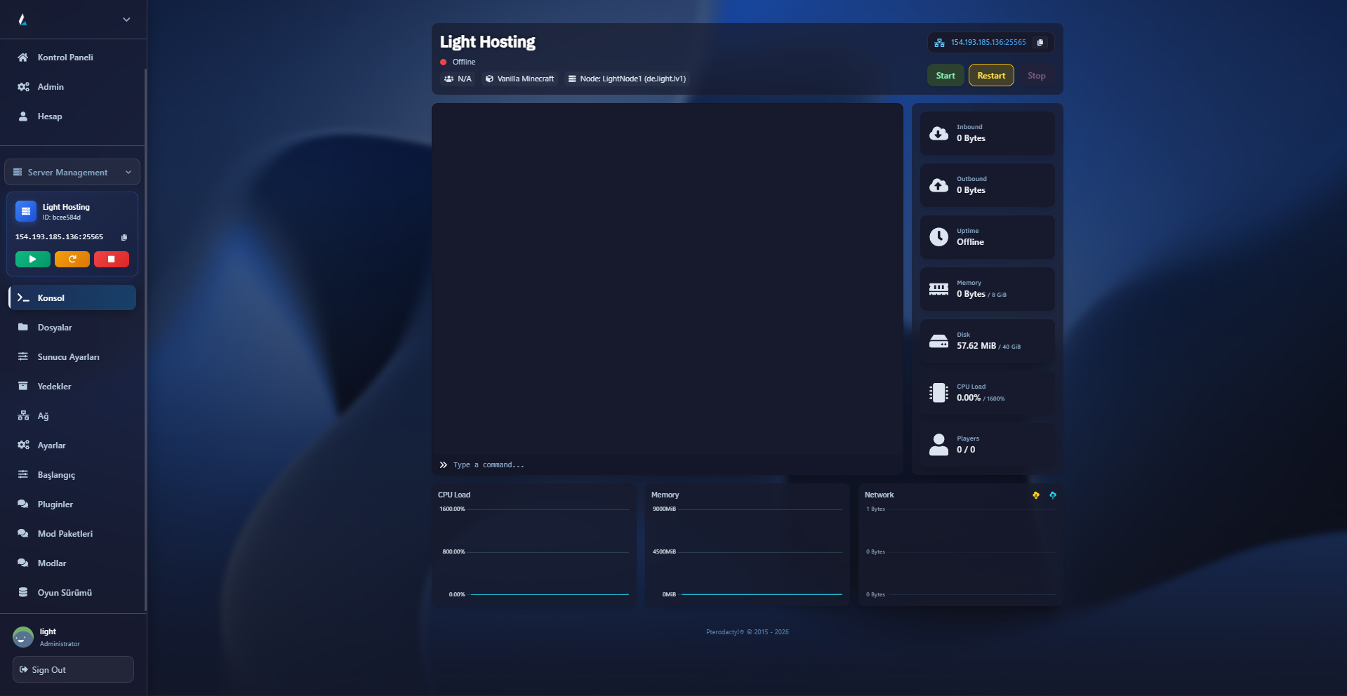 Şimdi KeşfedinMinecraft, büyük dünyalar ve çok oyunculu oynanış ile büyük bir kaynak tüketimi gerektirir. Light Hosting, yüksek performanslı VPS ve VDS sunucu çözümleri sunarak oyun içi gecikmeler ve kesintiler yaşamadan oyun oynamanızı sağlar. Maksimum uptime garantisi ile sunucularımız her zaman erişilebilir olur.